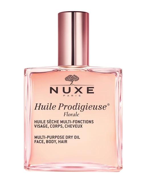 El Aceite Huile Prodigieuse Florale es un aceite seco multi-funciones para rostro, cuerpo y cabello. Este producto está formulado con 7 aceites vegetales preciosos, entre los cuales se encuentran el aceite de Argán reparador y el aceite de Flor de Tsubaki hidratante. Su fragancia floral, fresca y delicada lo hace único. En un solo gesto, la piel queda nutrida, alisada, unificada y sublimada; el cabello se suaviza y adquiere un brillo excepcional. Se ha demostrado su eficacia anti-oxidante y sobre la reducción de la apariencia de las estrías. Contiene un 96,9% de ingredientes de origen natural y aceites 100% vegetales.