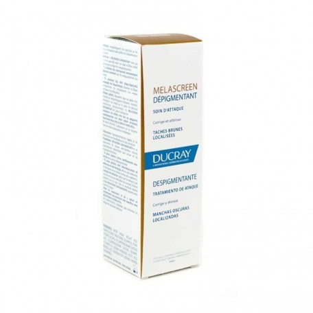 La crema despigmentante Ducray Melascreen corrige y atenúa las manchas localizadas. Este tratamiento de ataque está diseñado para corregir y atenuar las hiperpigmentaciones localizadas en la cara y/o el escote. Se trata de un cuidado tratante adaptado para luchar eficazmente contra las manchas oscuras.